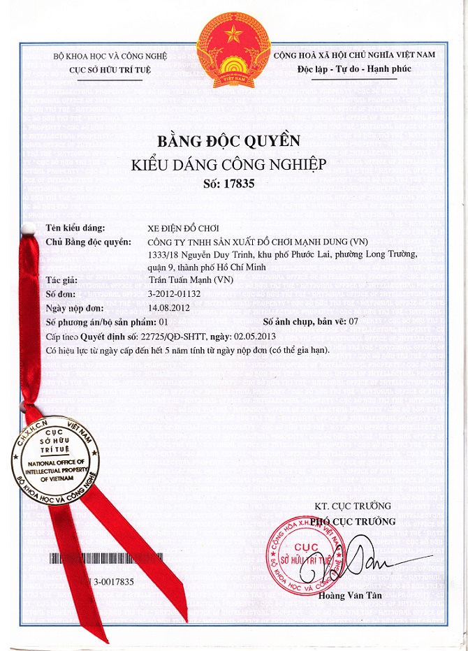 HỒ SƠ ĐĂNG KÝ KIỂU DÁNG CÔNG NGHIỆP TRÒ CHƠI VOI BAY LƯỢN